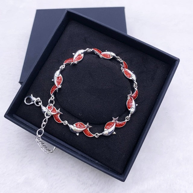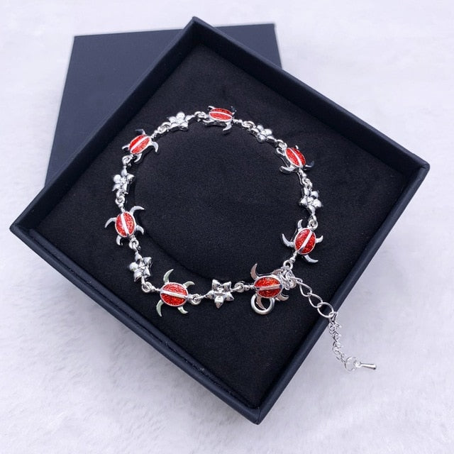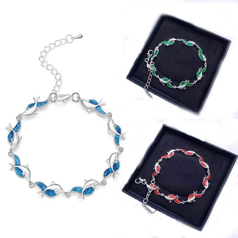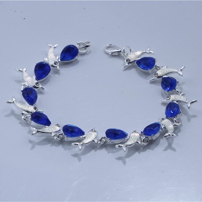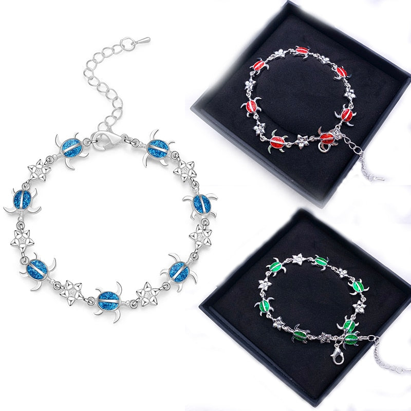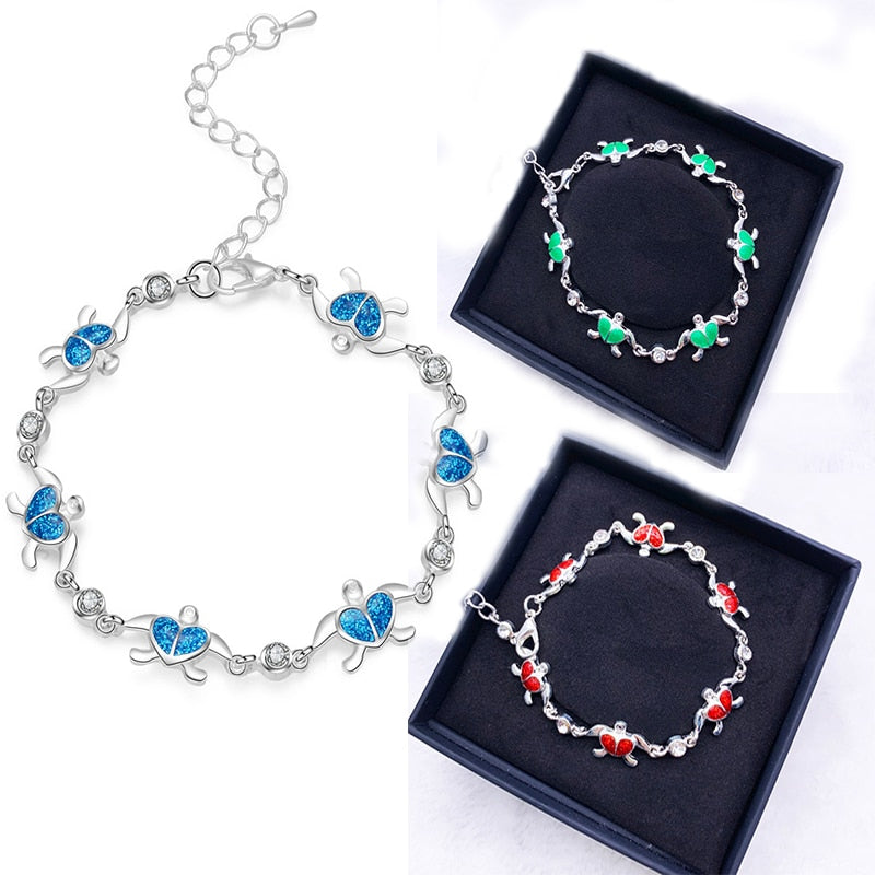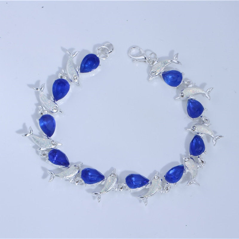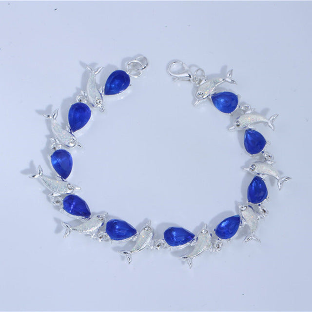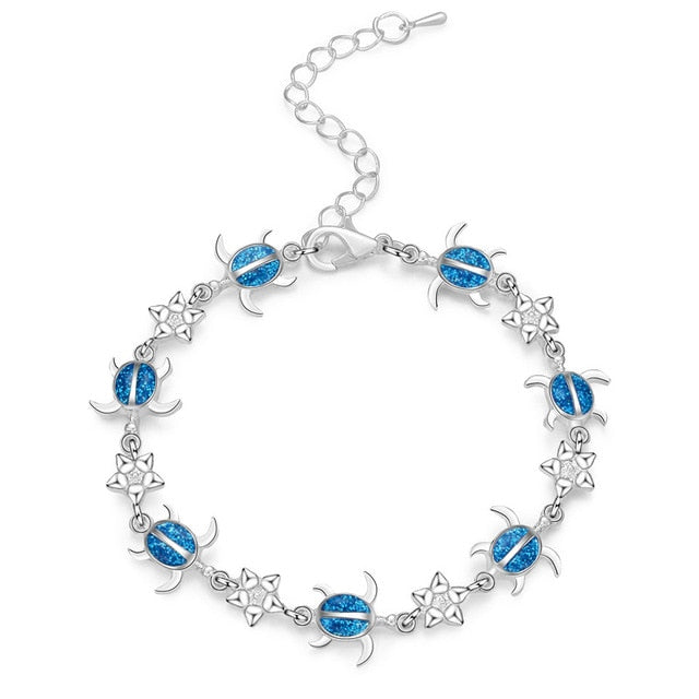 Summer dolphin turtle bracelet blue opal silver color hand chain beach jewlery