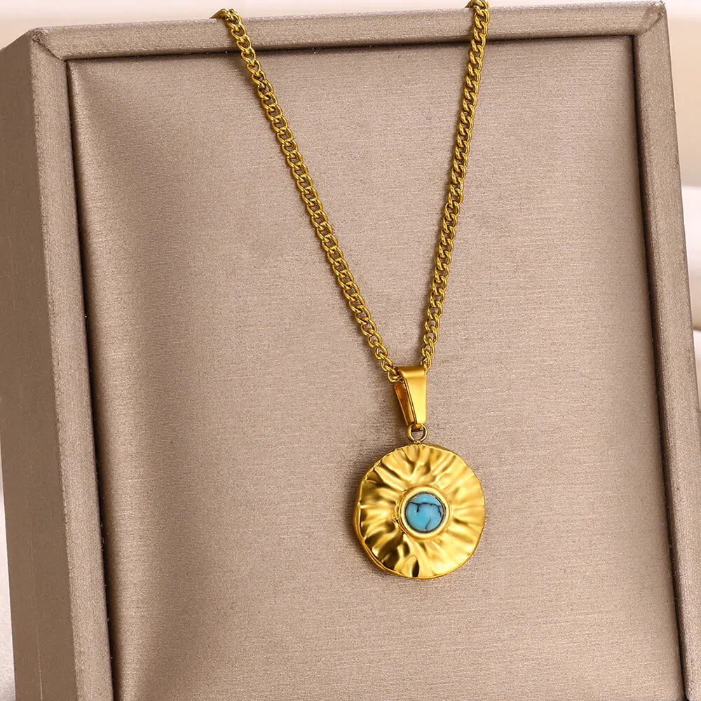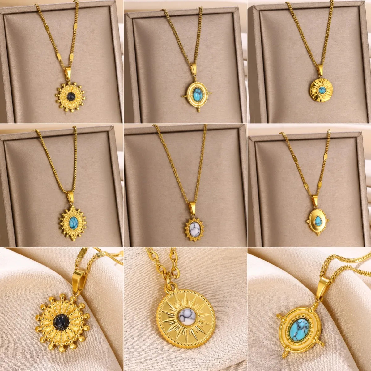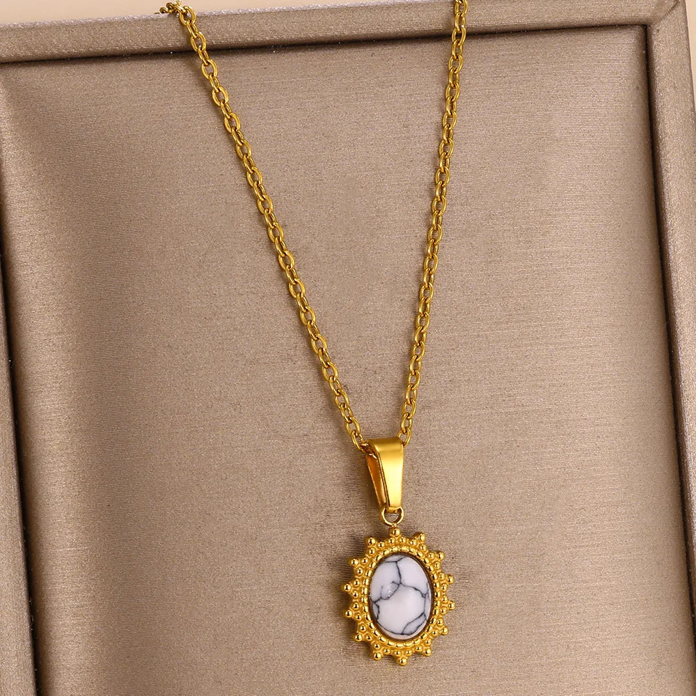 Natural Stone Round Necklace Stainless Steel Aesthetic Texture Pendant Necklaces For Women Gold Color Chain Trend Hippie Jewelry