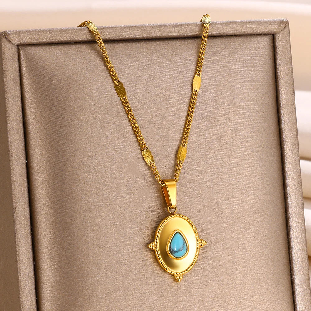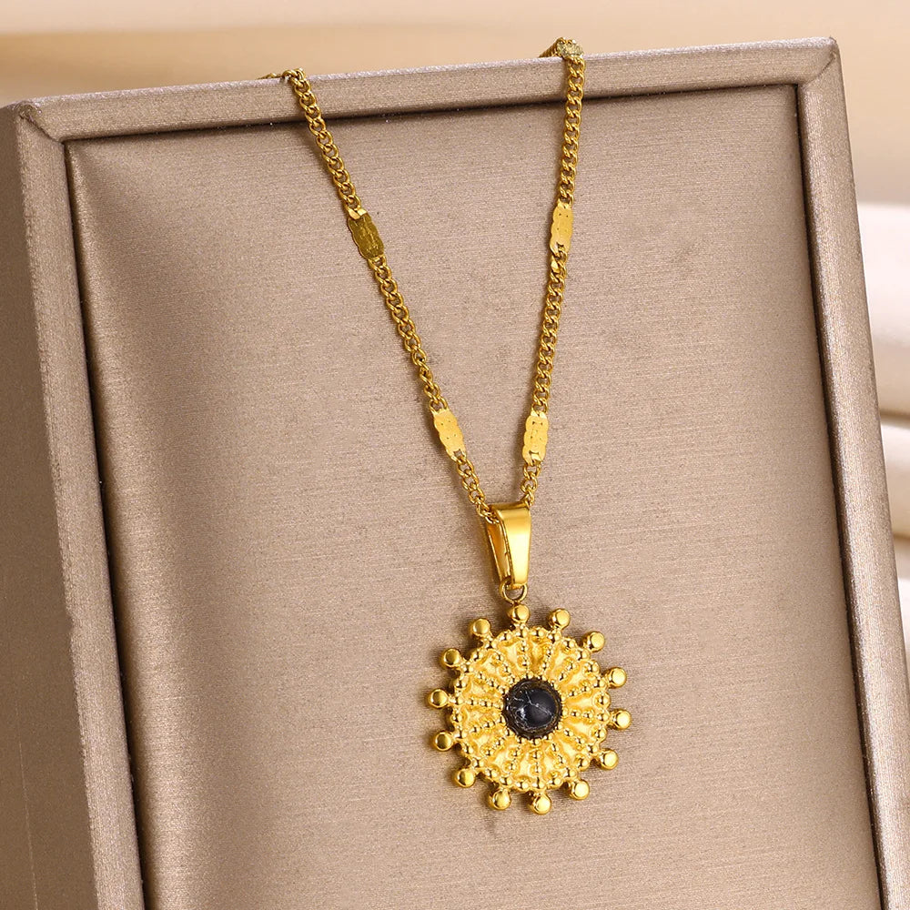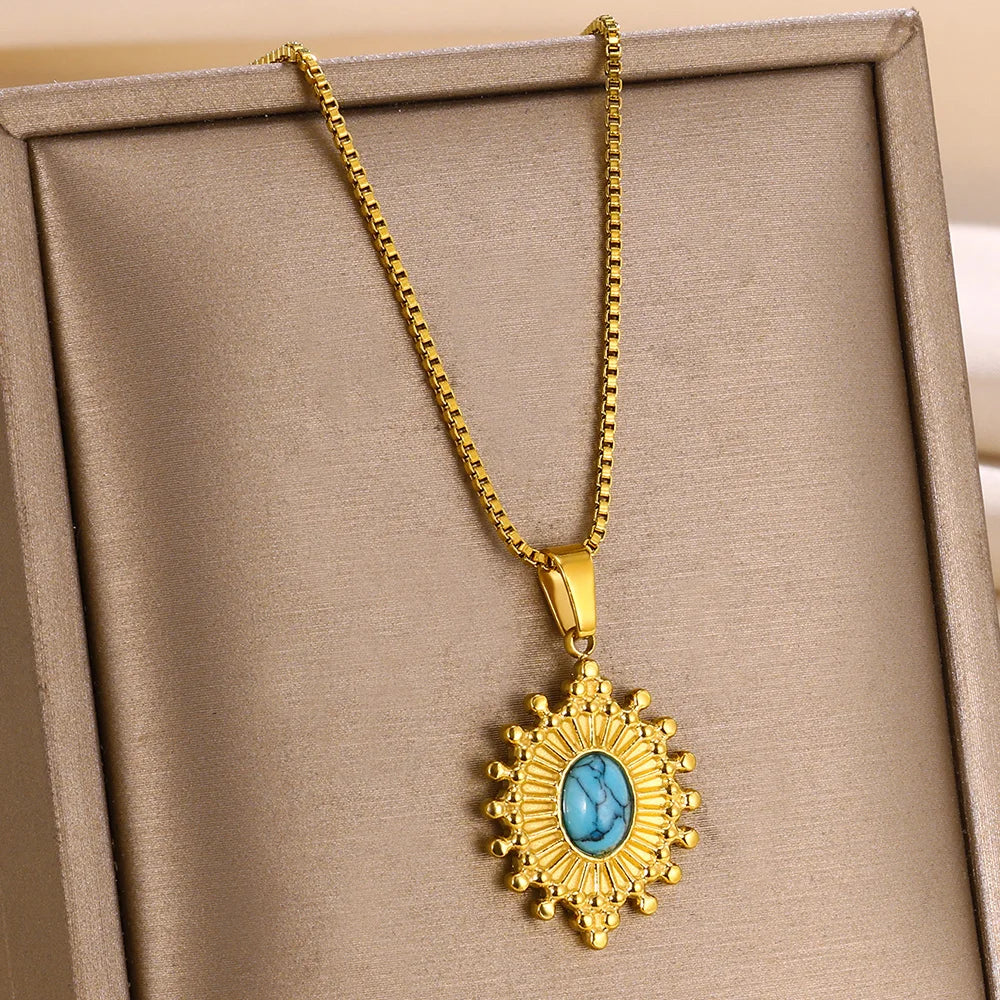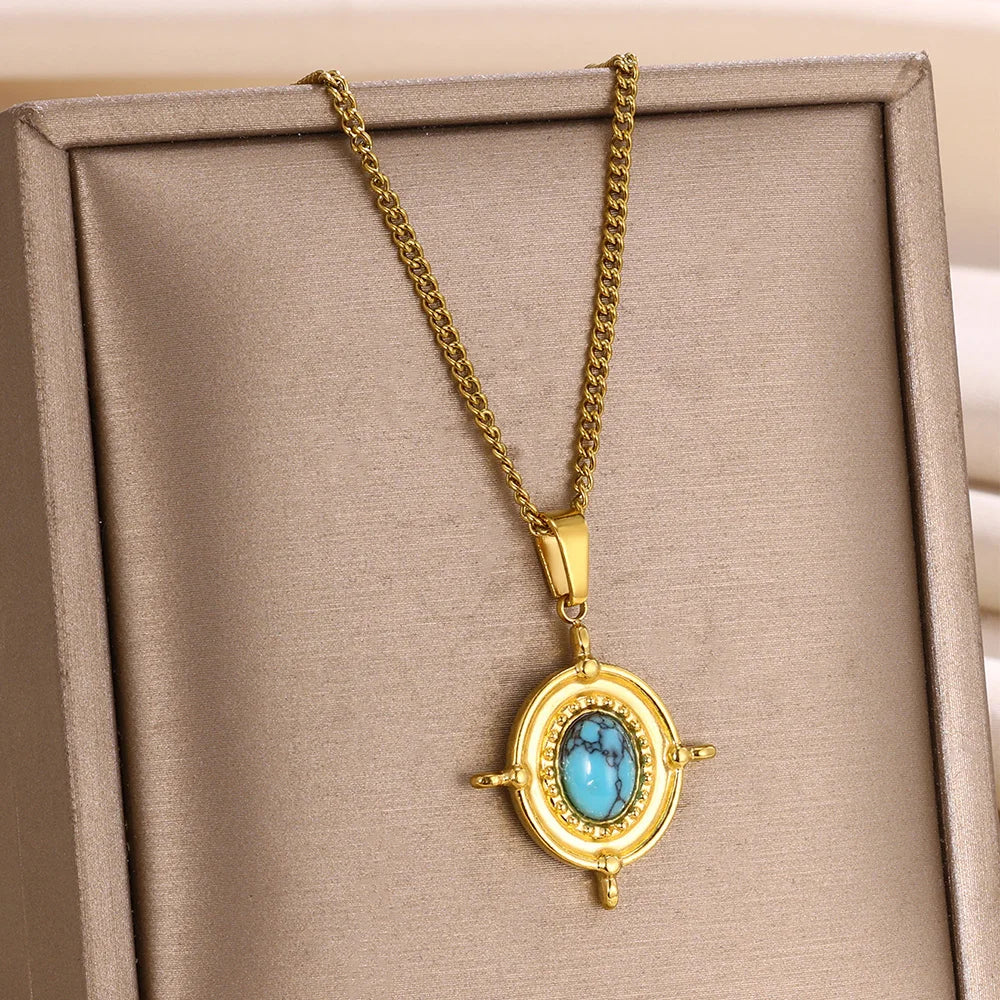 Natural Stone Round Necklace Stainless Steel Aesthetic Texture Pendant Necklaces For Women Gold Color Chain Trend Hippie Jewelry