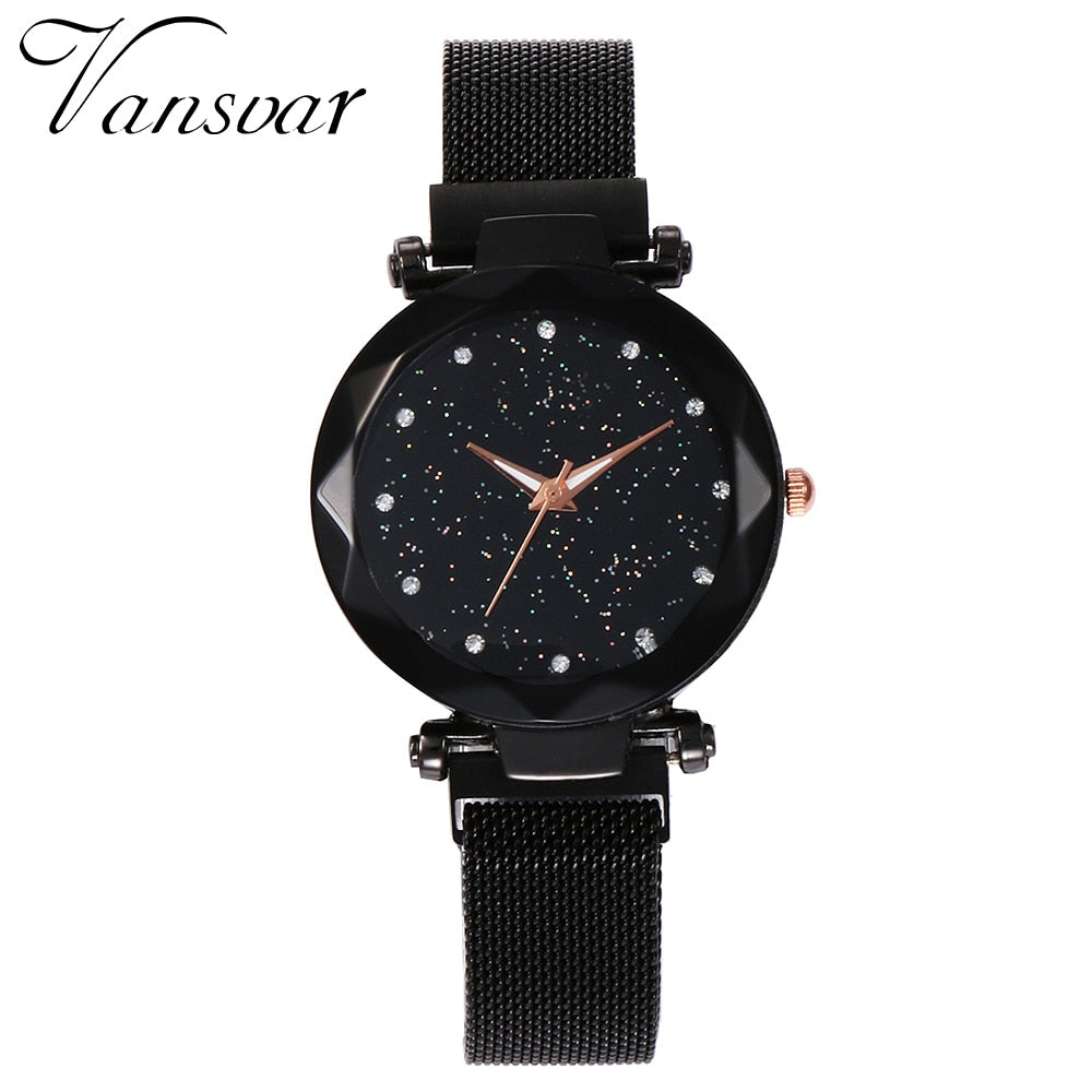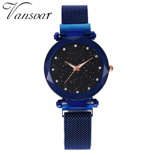 Women Mesh Magnet Buckle Starry Sky Geometric Surface Quartz Watch